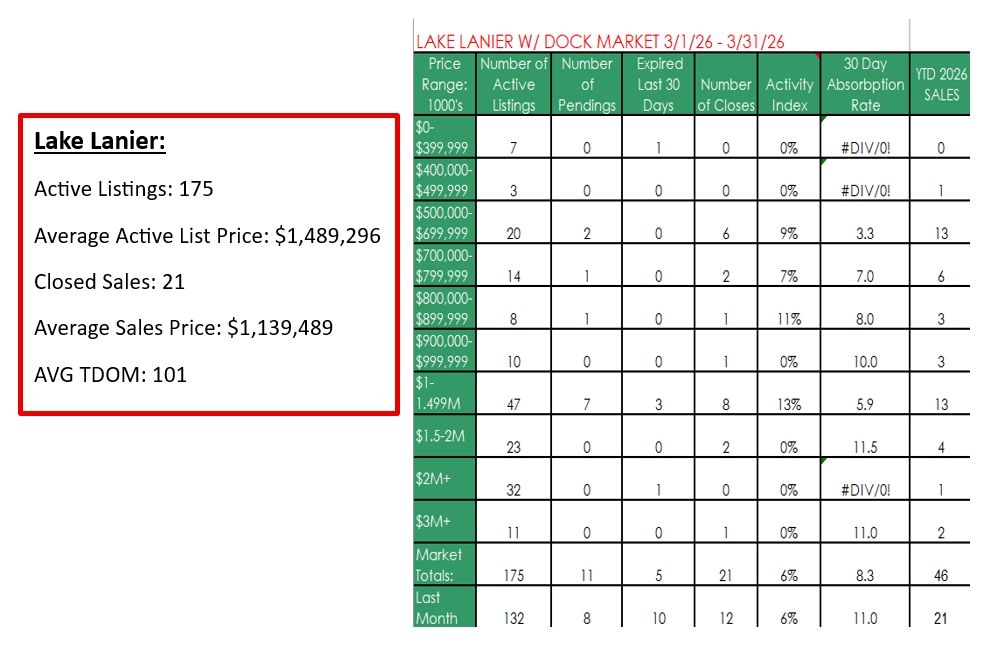 Inventory jumped significantly on Lake Lanier (winter → spring build-up)