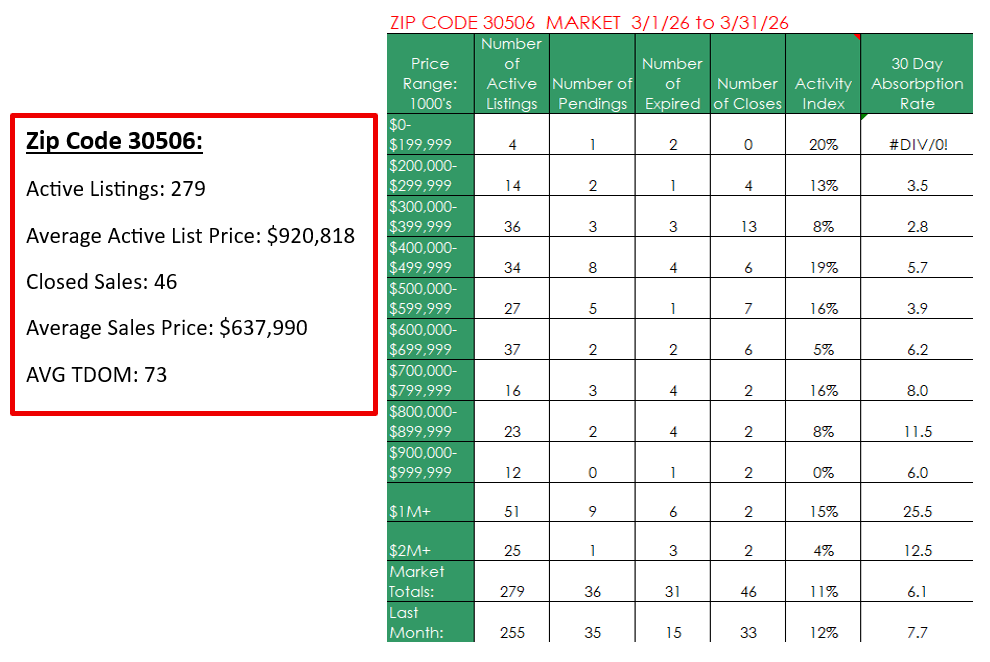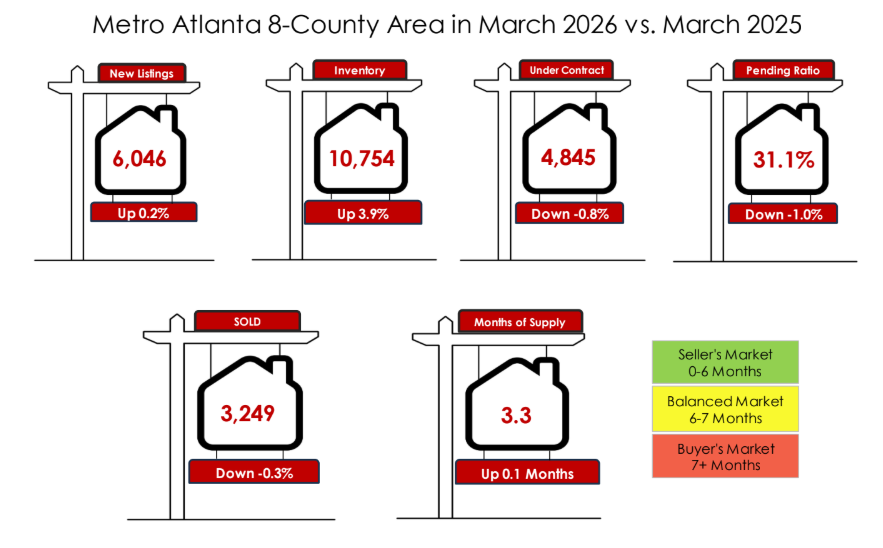 The April 2026 real estate market across North Metro Atlanta continues to show a steady shift toward balance. Using data from First Multiple Listing Service (FMLS), we’re seeing a combination of rising inventory, modest price growth, and slightly slower buyer activity—creating a more measured, less competitive environment than in recent years.