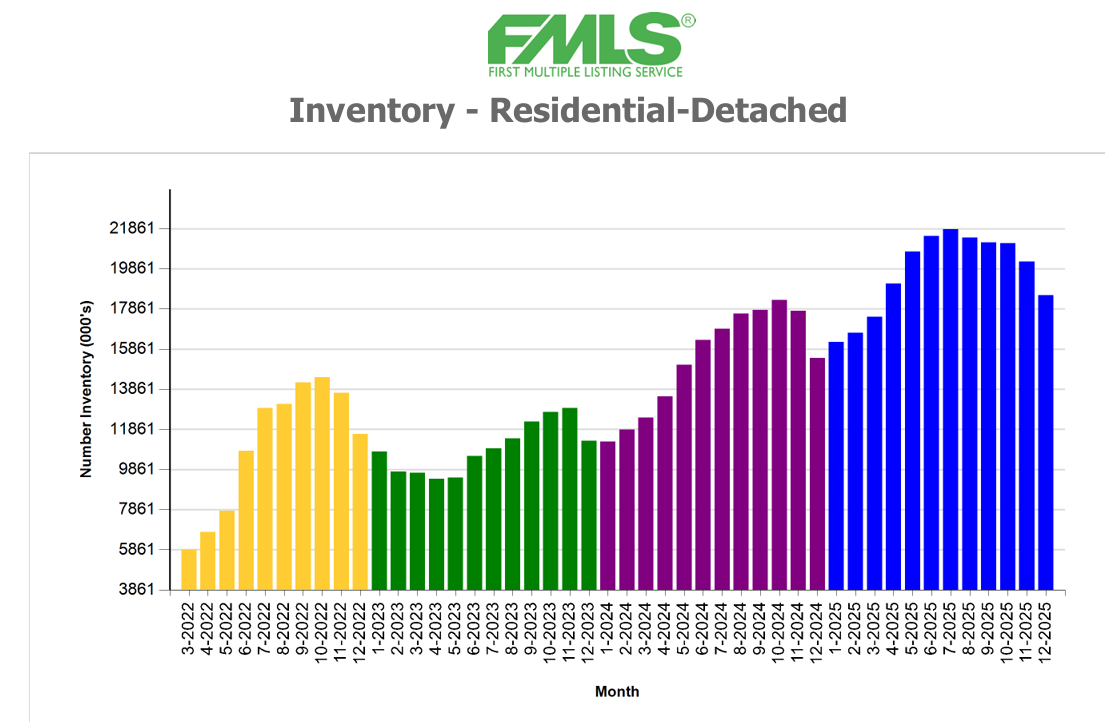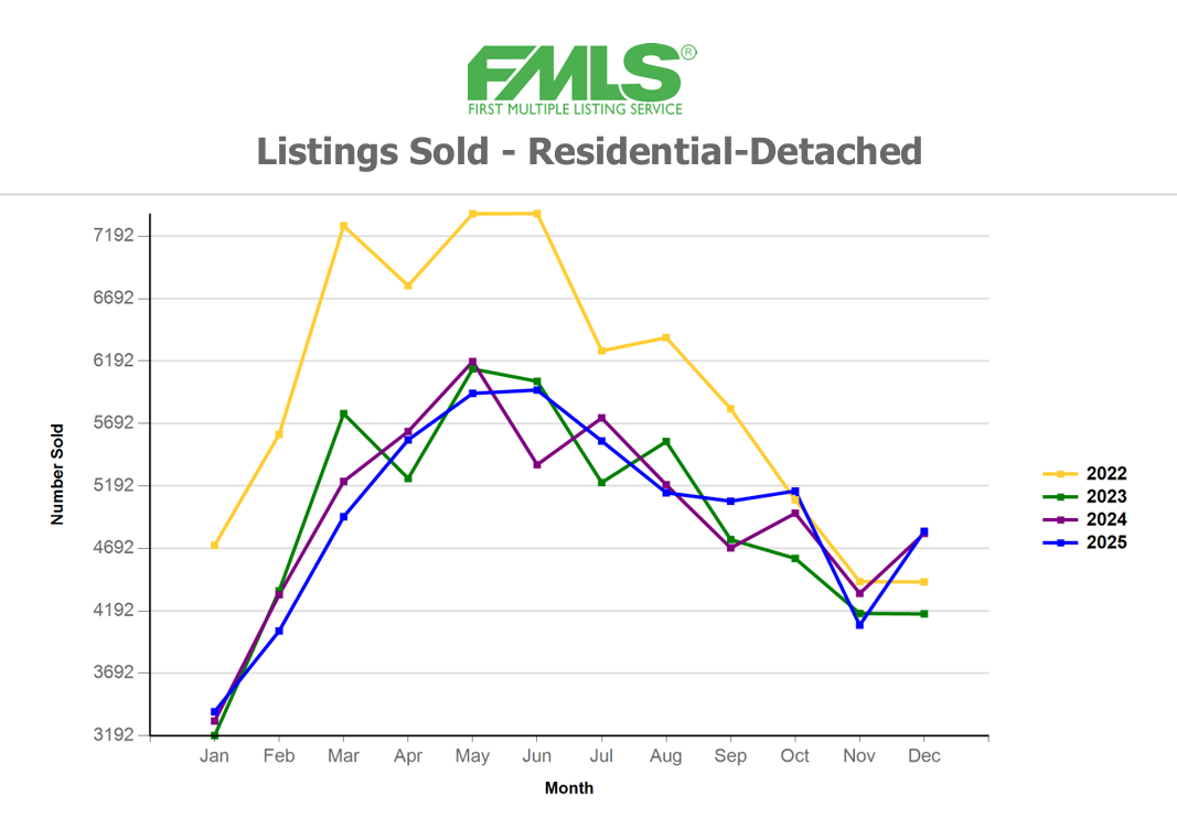 Sales slowed in late 2025, consistent with typical seasonal cool-down patterns, but homes priced competitively continued to sell at reasonable pace.
